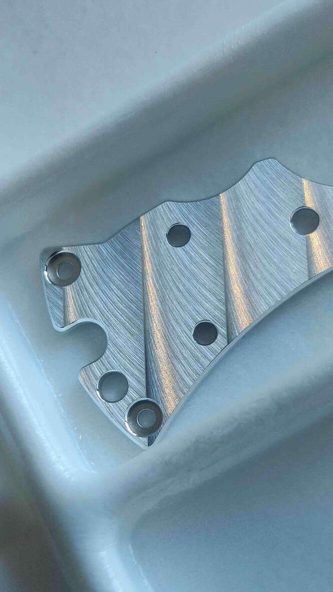 After the dial shape is cut out, its surface is diagonally brushed creating a gradient effect that's intended to imitate shooting stars when tilted in different light.During this prototyping process for the Deep Space Blue, we decided to mirror the angle of the brushed decoration, as another subtle difference from the original Deep Space watch series. The animated effect of shooting stars will be similar, just moving from a different trajectory.