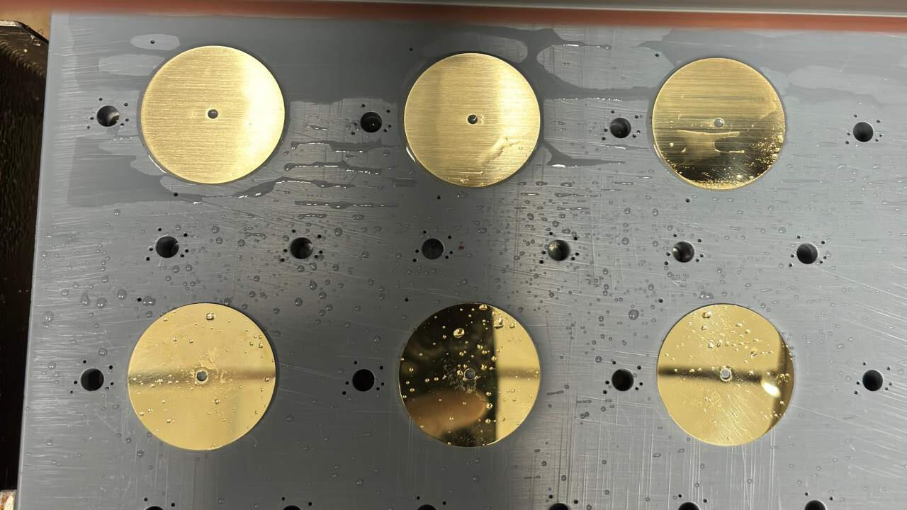 Once the dial blanks have been cut from brass they are then cleaned and given a brushed finish, which will later help create the unique and gradiented shooting star effect.